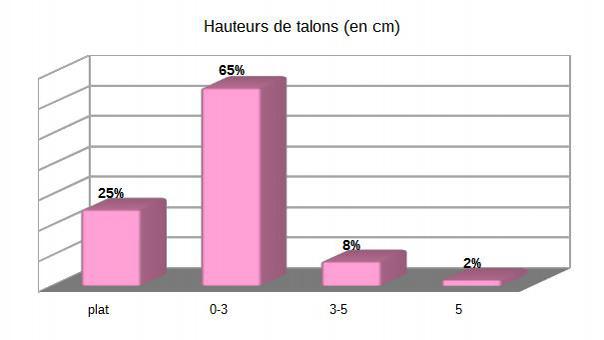 La hauteur de talon chez les dames reste inférieure à 3 centimètres dans 90% des cas. Seuls les modèles ultra-fashion et les chaussures de fête prennent davantage de hauteur.