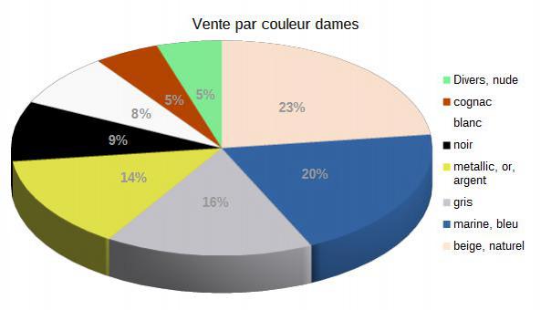 Chez les femmes, le bleu, le beige, le naturel, le blanc et les coloris métallisés représentent plus de 60% du chiffre d'affaires.