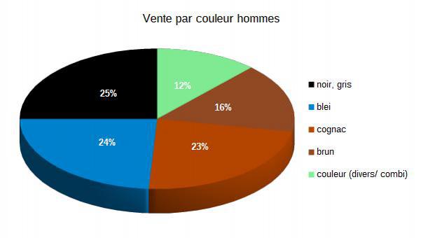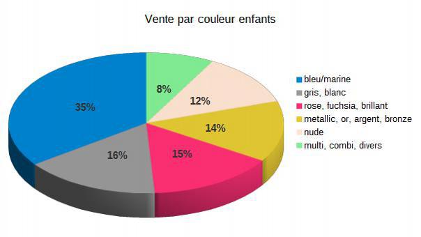Les hommes restent un peu plus classiques avec 25% de noir et 39% de cognac et de brun. Chez les enfants, l'été bat son plein avec une large palette de couleurs gaies.