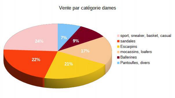 Au niveau des modèles, les sandales représentent une paire sur quatre chez les dames. Les sneakers, les ballerines et les escarpins restent au top.