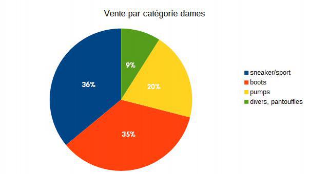 Les articles vendus en février peuvent être scindés en deux grands groupes. Il y a les boots, bottines et escarpins d'une part et le reste englobe les baskets et toutes les formes possibles de modèles sportifs. Il n'est quasiment pas question de sandales, ni de mocassins. Ni de bottes hautes, d'ailleurs. Ces articles ne sont mentionnés que marginalement. Il y a vingt ans, l'intérêt pour les chaussures de communion connaissait déjà des sommets en février, et même fin janvier. Aujourd'hui, ces articles suscitent nettement moins d'intérêt et même quasiment plus du tout dans les centres urbains. La palette de tons est également très classique. Chez les dames comme chez les messieurs, le noir, tous les tons bruns, le gris et le bleu représentent plus de 80% des paires vendues. Ce ne sont pas vraiment des couleurs de printemps-été.