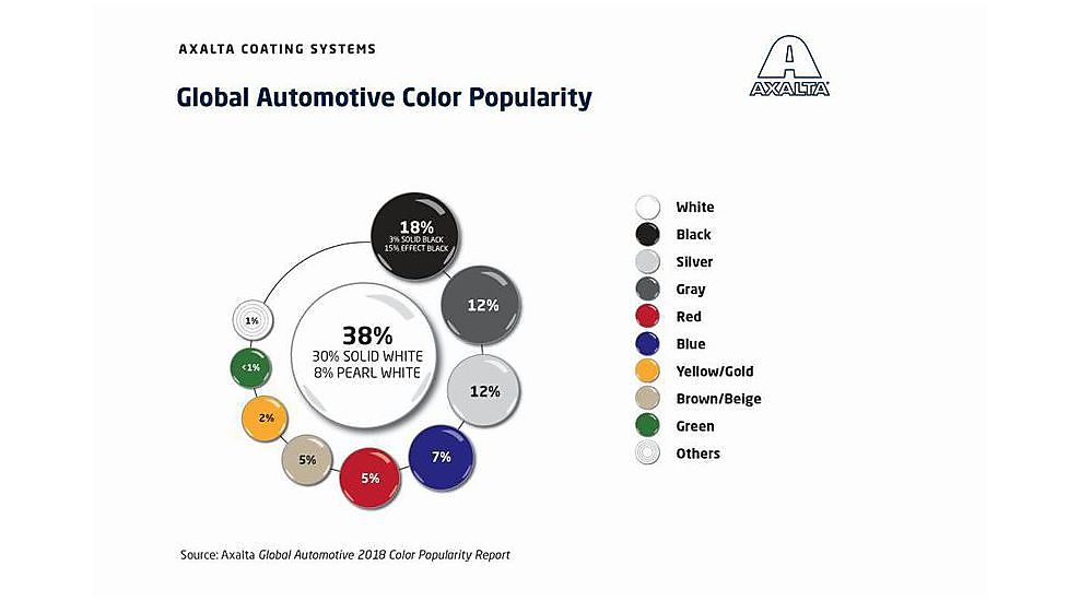 Axalta heeft onlangs haar 66e jaarlijkse wereldwijde autokleur populariteitsrapport uitgebracht. Uit het rapport blijkt dat wit wereldwijd koploper is in de kleurenkeuze voor consumentenvoertuigen in 2018. Wit hield met 38% zijn toppositie vast en creëerde een aanzienlijke kloof met zwart (18%) en zilver en grijs (12%). Regionaal gezien zagen zwart en grijs significante stijgingen. Zwart steeg in China (5%), Azië (3%), Zuid-Korea en Afrika (beide 2%). Grijs won terrein in Afrika (3%) en Europa (2%). "Wit wordt wel uitgedaagd door een opkomende trend naar warmere tinten en kleurencombinaties met zwart", aldus Nancy Lockhart, wereldwijde kleurmarketingmanager bij Axalta. "Hoewel neutrale kleuren de aanvoerders zijn, is er wel een indicatie voor een terugkeer naar kleur. Blauw is, naast de neutrale kleuren, het populairst en vertegenwoordigt 7% van de markt, oranje en brons zijn aan een opmars bezig en winnen aan interesse." Het Axalta rapport, dat sinds 1953 jaarlijks wordt gepubliceerd, is het langstlopende en meest uitgebreide kleurenverslag in de auto-industrie. Samengesteld en ontworpen door de wereldwijde kleurexperts van Axalta, biedt het rapport automotive OEM's fascinerende inzichten in consumentenvoorkeuren.