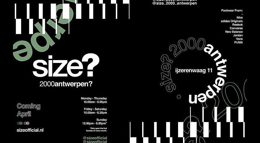 In April opent de eerste Belgische vestiging van de sneakerketen Size? de deuren in Antwerpen. Het is een concept van JD Sports Fashion Group dat in 2000 werd opgericht in Groot-Brittannië. Het staat bekend om de limited edition sneakers die er verkrijgbaar zijn. De focus ligt sterk op wat er in de individuele steden gebeurt in de sneakerwereld. Het verhaal achter de schoenen staat in elke winkel, met een eigen karakter, centraal. Inmiddels werkt Size? ook samen met merken als Puma, Adidas en Nike voor exclusieve samenwerkingen. De eerste buitenlandse winkel werd geopend in 2012. Intussen zijn er al vestigingen in Frankrijk, Italië, Duitsland, Spanje en Nederland. De veertigste winkel wereldwijd van de keten opent de deuren op IJzerenwaag 11, in Antwerpen.