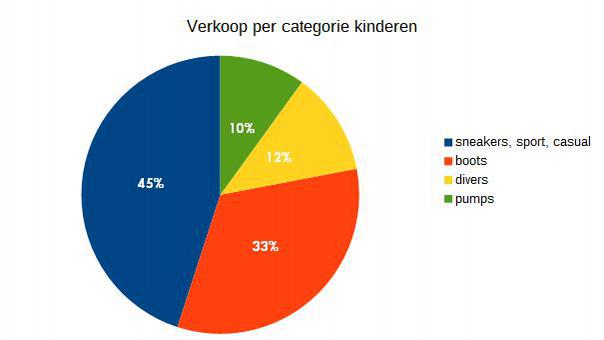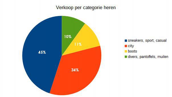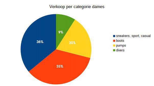 De artikelen die in februari werden verkocht, zijn in twee grote groepen onder te verdelen. Er zijn de booties, bottines en pumps enerzijds, en de rest gaat naar baskets en alle mogelijke vormen van sneakers en sportieve modellen.Van sandalen of mocassins is nauwelijks sprake, evenmin als van hoge laarzen trouwens. Die artikelen worden slechts marginaal vermeld.